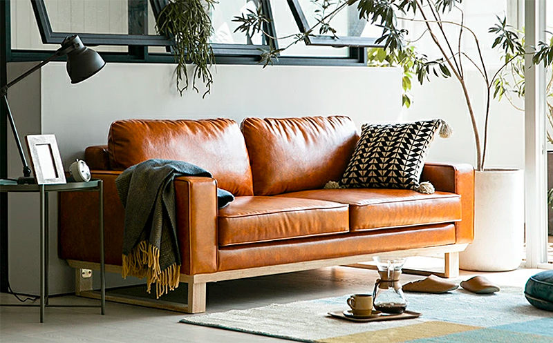 ヴィンテージ風の部屋に置きたくなる、落ち着いた雰囲気の3人掛けレザーソファ