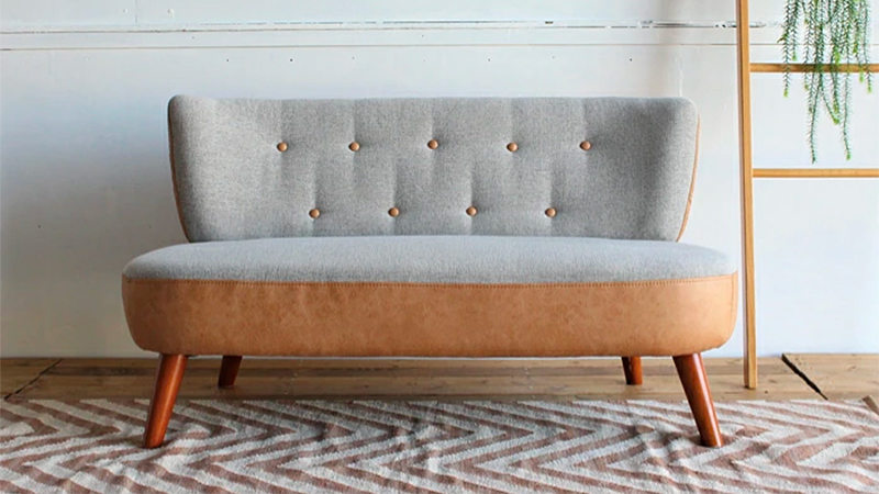 丸みを帯びたかわいいツートンカラーの2人掛けコンパクトソファ