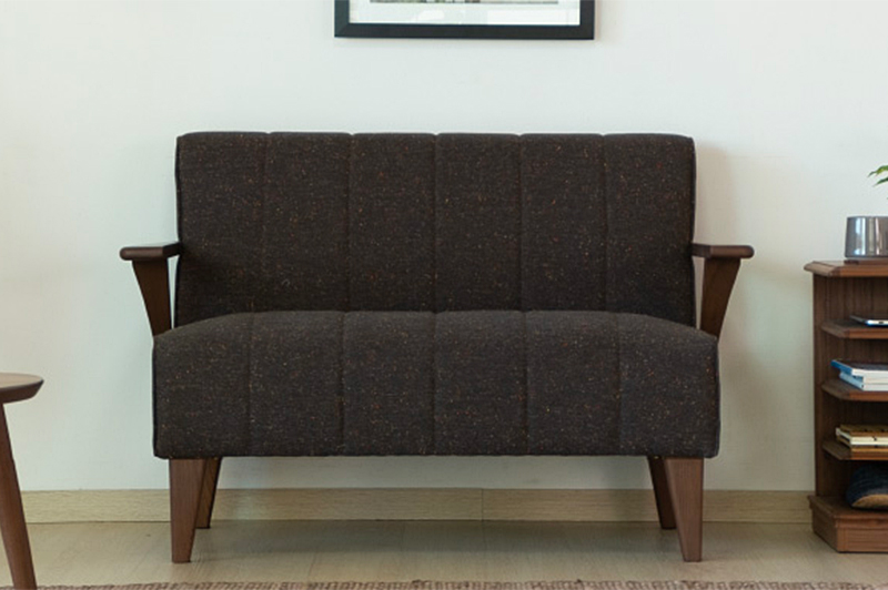 コンパクトな落ち着きのあるミディアムブラウン色の2人掛けモダンソファ
