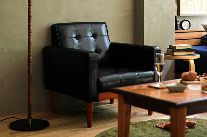 存在感のある高級感漂うヴィンテージ風1人掛けレザーソファ