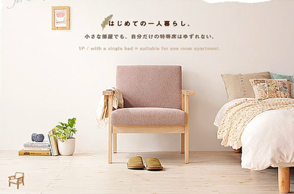 アースカラー×天然木フレーム ナチュラル北欧1人掛けソファ