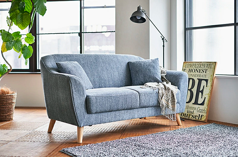 滑らかな曲線フォルムの落ち着きのあるナチュラル系2人掛けソファ