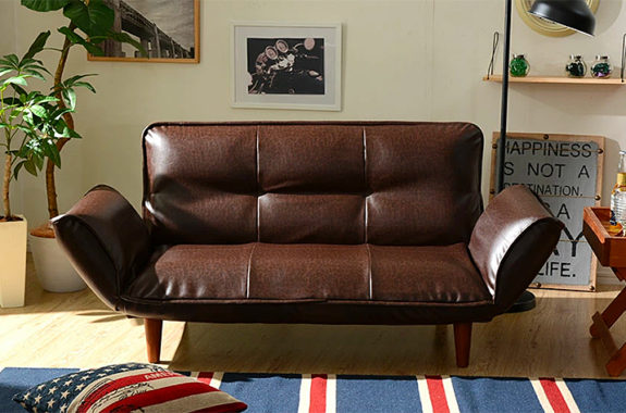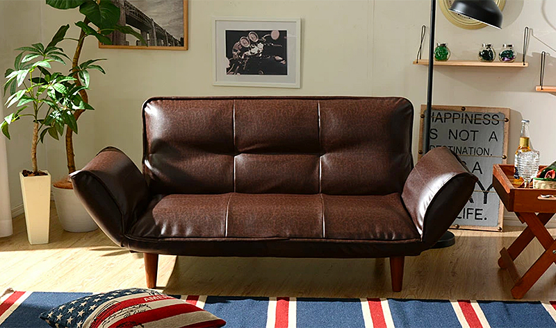 ヴィンテージムードが楽しめる、コンパクトなリクライニング2人掛けソファ