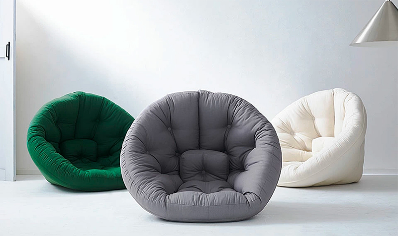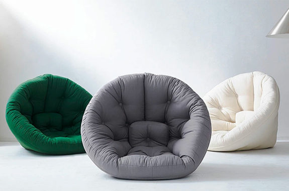 体がすっぽり埋められる1人用のソファです。北欧デザインを代表するデンマークの若手デザイナーを手がけたソファです。テレビを見たり、本読んだり、お茶をしたりなどさまざまなシーンでくつろげるソファ。半月型に広げることもでき、ちょっと横になりたい時にマットにもなります。2つつなれば円型マットにもなります。男性でもゆったり座れるサイズです。